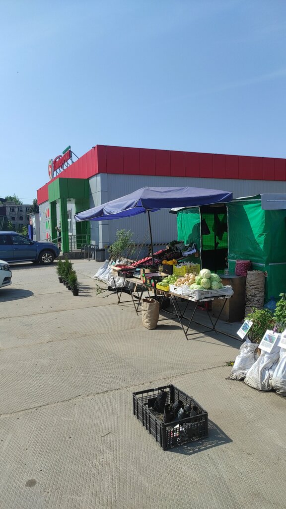 Полюсы: большой ассортимент, много свободного места, чисто, удобная парковка. Минус: только одна касса самообслуживания.