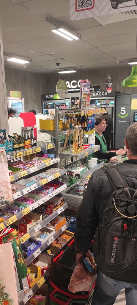 Кажется что это худшая пятёрочка города: из трёх касс работает только одна, вторую откроют только если накричать на кассира. очень часто очереди, вечером это наплыв обычных людей работающих 5/2, днём и утром это молодые мамы и пенсионеры(ни к тем, ни к другим, негатива у меня нет), таким образом практически в любое время дня в единственную работающую кассу очередь минимум 4 человека! касс самообслуживания нет, очень странный и непонятный ассортимент газированных и энергетических напитков. по какой-то причине, кола без сахара либо в 99% отсутствует в этой пятёрке, либо выставляется на отдельную от всех напитков полку, в самый низ, в самый угол. при этом в 5! минутах ходьбы, есть вторая пятёрка, где: адекватный ассортимент напитков, 4 кассы самообслуживания, часто работают по 2 обычные кассы(из трёх) очереди очень редкие