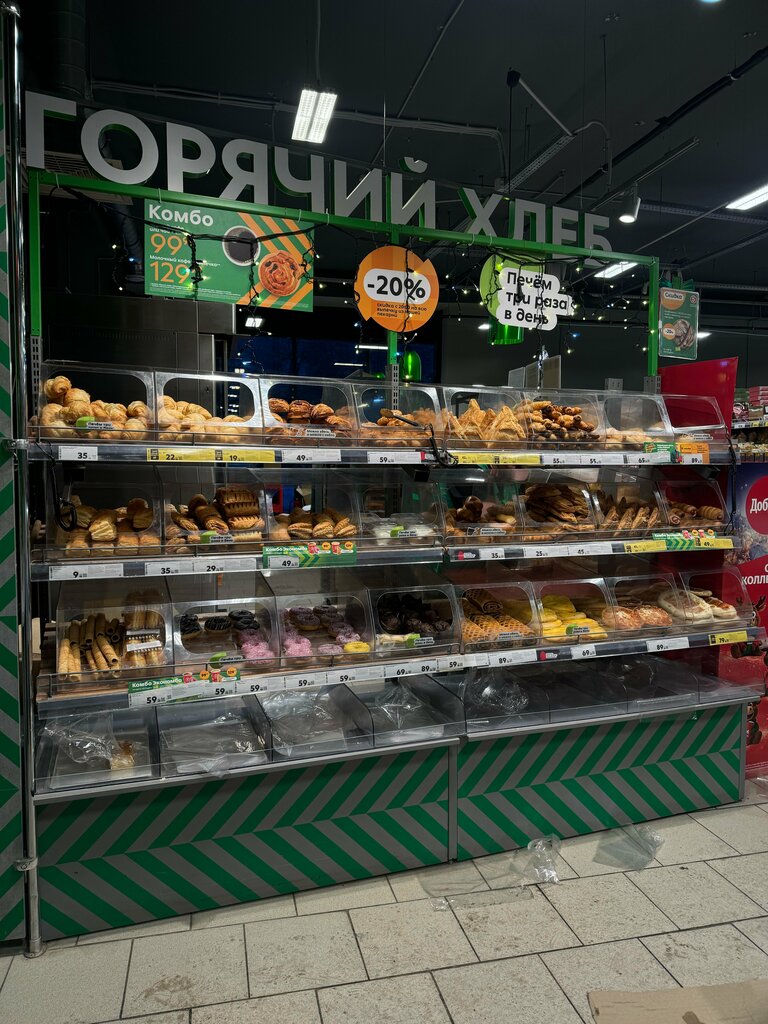 в целом более менее, но первые полторы - две недели, все полки и товары которые вне холодильников в строительной пыли, неприятно вроде чисто, но бегают тараканы в зоне "отдыха" для того чтобы съесть выпечку (фото прикрепила) уже не первый раз за несколько лет, переодично пахнет туалетами, в том году даже в магазин зайти не возможно было вот сидишь ты ешь свою булочку, пахнет "какашками" и рядом ползёт таракан, антуражно! и с новым ремонтом переодично не работает по 2-3 кассы самообслуживания, да, раньше одна была, но сейчас если вы дали возможность - то соответствуйте им есть над чем работать ещё про бабушку уборщицу,можешь сидеть есть и она выгоняет людей мол ей надо прибраться, говорит не ходить по магазину если она там помыла полы, извините, мне до товара как дойти? если проигнорировать, то начинает бухтеть