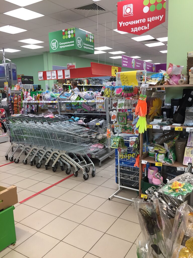 Вежливый персонал, удобное расположение и достаточно большая парковка. Большой выбор продуктов, все свежее. Всегда есть акции и специальные предложения, скидки. Удобно, что внутри функционирует банкомат (снятие/внесение) Сбер.