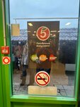 Из плюсов: хороший ассортимент товаров, нормальные цены. Минусы: 2 из 5 касс самообслуживания постоянно отключены — и это очень плохо, т.к. здесь гигантские очереди (кассу рядом с выпечкой, кстати, тоже часто отключают). Также не работают автоматические двери — из-за этого у входа постоянно толпятся люди