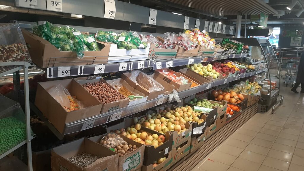 У магазина странное расположение отдел с напитками, бытовой химией, косметикой, кормами для животным ищите за кассой у стены есть проходить. Также отдел с печенье легко можно пройти (ищите за полками с конфетами наразвес). Недавно там появилась выпечка, свежий хлеб и кофе. Вот по вечерам большие очереди, даже открытие второй кассы не спасают ситуацию, у людей много товаров в корзине. Обычно работает одна, касса у стены и охранника с монитором.