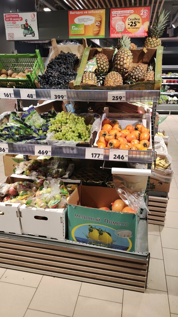 Приятный просторный магазин, хороший доброжелательный персонал . Всегда свежие продукты , а еще сейчас будет выпечка , что очень радует как покупателя .