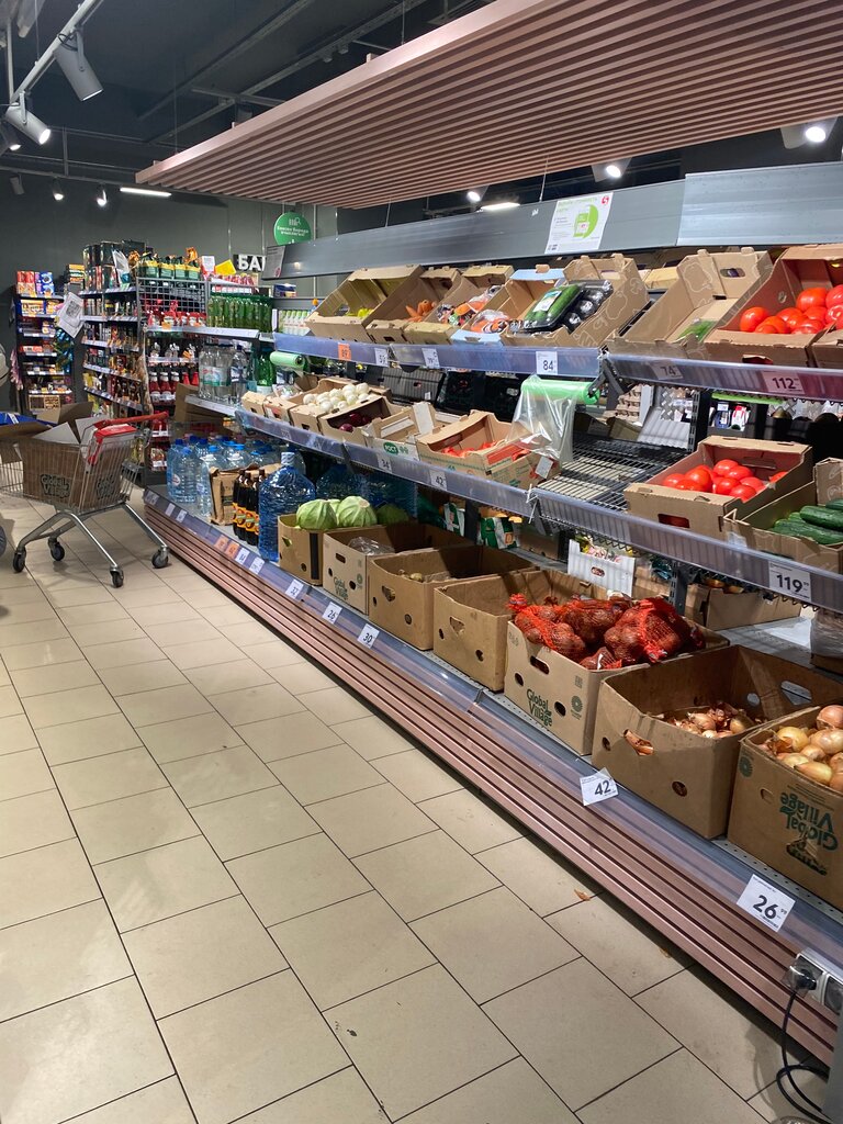 Ужасный беспорядок в данной пятёрочке. Товары не на своем месте, гнилые фрукты, абсолютно уродливая выпечка. И самая главная претензия - чистота. Сотрудница вышла из отдела молочки, прошла мимо выпечки и, остановившись, поправила рукой в перчатке самсу. До этого она убиралась в другом отделе