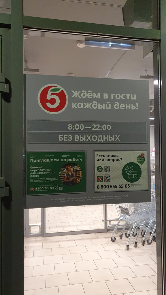 Я хочу поделиться своим положительным опытом покупок в сетевом магазине «Пятёрочка». Это действительно отличный магазин, где практически всегда можно найти все необходимые товары. Персонал вежливый и отзывчивый, что делает процесс покупок ещё более приятным. Чистота и порядок в магазине на высоком уровне, что также радует. Ценники всегда на месте, и это позволяет легко ориентироваться в ценах. Честно говоря, минусов я не заметила. Рекомендую «Пятёрочку» всем, кто ценит качественное обслуживание и удобство! Парковка большая