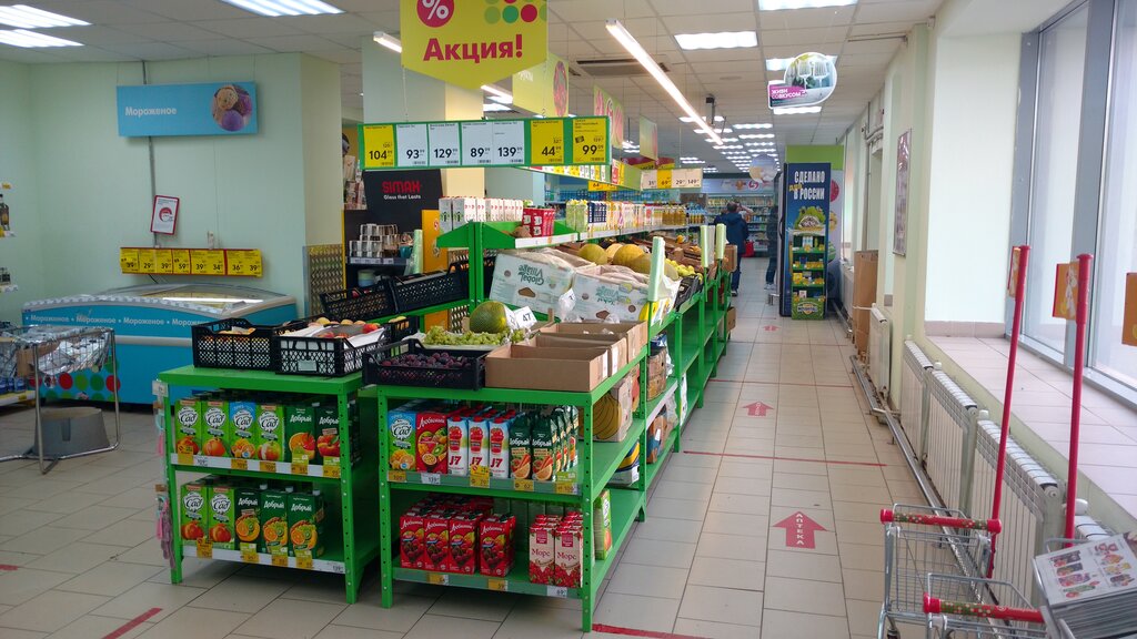 Удобное местоположение, есть пандус, в магазине просторно. Редко кто из работников данного места по приветствует. В час пик возможны очереди на кассе. Нет алкогольной продукции. Потолок при входе может упасть на ПОСЕТИТЕЛЕЙ, БУДЬТЕ ОСТОРОЖНЕЙ. Обязательно проверяйте чек. Поток исправили, приветствие зависит от смены.