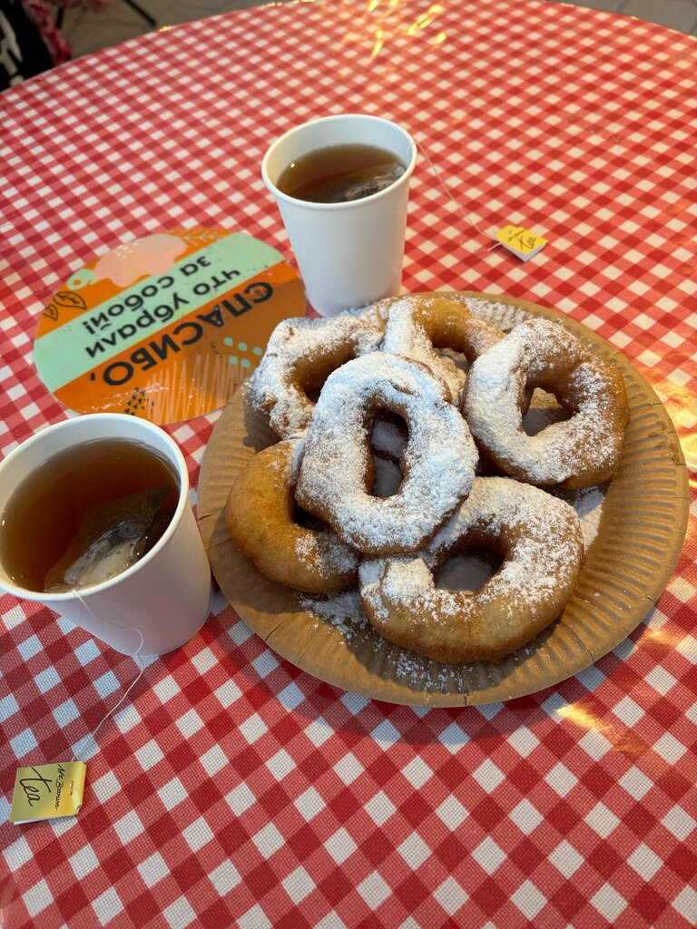 Пышки все еще вкусные но уже сделаны заранее. Цены на воду просто убийственные, кофе за такие деньги чуть ли не растворимый(