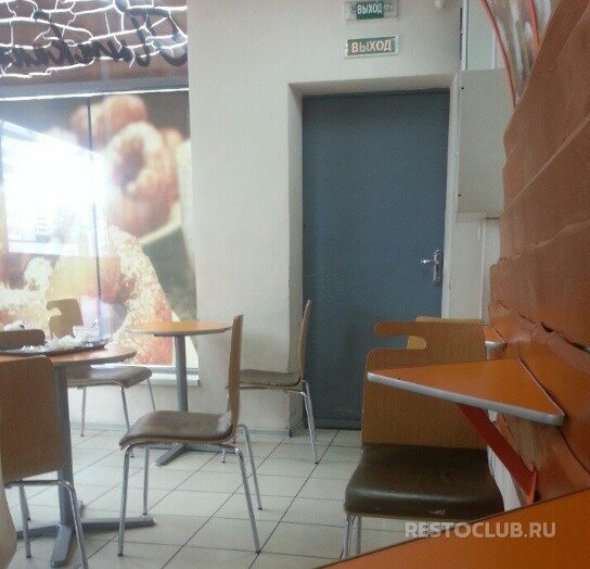 Вкусные пышки и кофе, только очень тесно.
