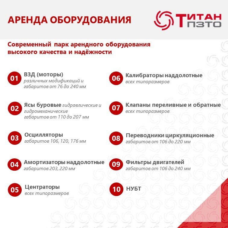 Отличная база бурового оборудования - ВЗД, ясы, циркуляционные переводники, калибраторы, осцилляторы, обратные клапаны, фильтры - высококвалифицированные сотрудники, хорошие условия для проведения ремонта и дефектоскопии.
