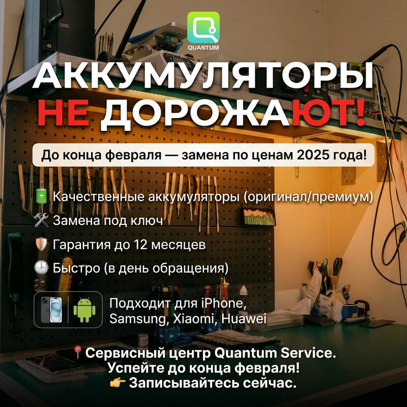 21.02.2026 22.02.2026 23.02.2026 Сервисный центр Quantum не работает. С 24.02 — в обычном режиме. Записаться/уточнить можно в Telegram: htt...