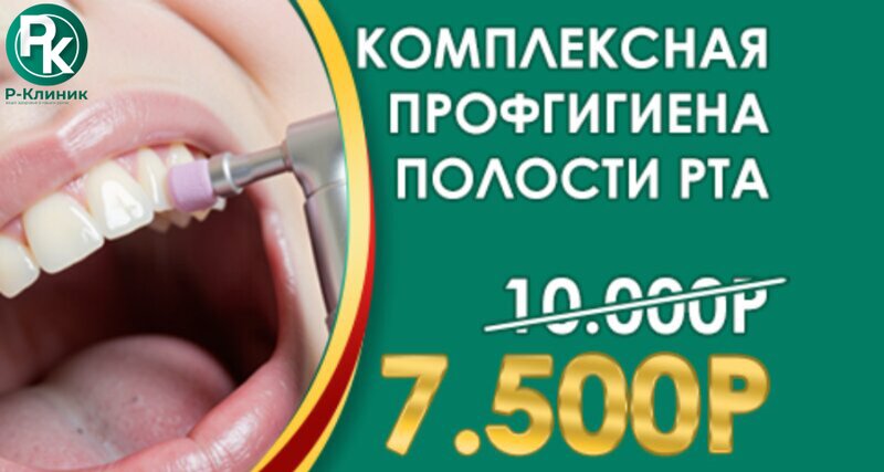 🦷 Акция на комплексную гигиену в Р-Клиник! Ультразвук + Эйр флоу + полировка всего 7 500 ₽ (вместо 10 500 ₽)! Идеальный уход за зубами по...