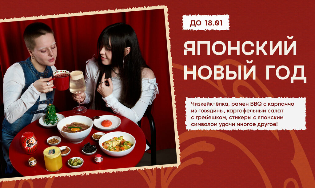 Японский Новый год в RA'MEN 🪭 До 18.01 Меню Главное зимнее блюдо — BBQ-рамен с карпаччо из говядины. Наваристый японский бульон даши, пшен...