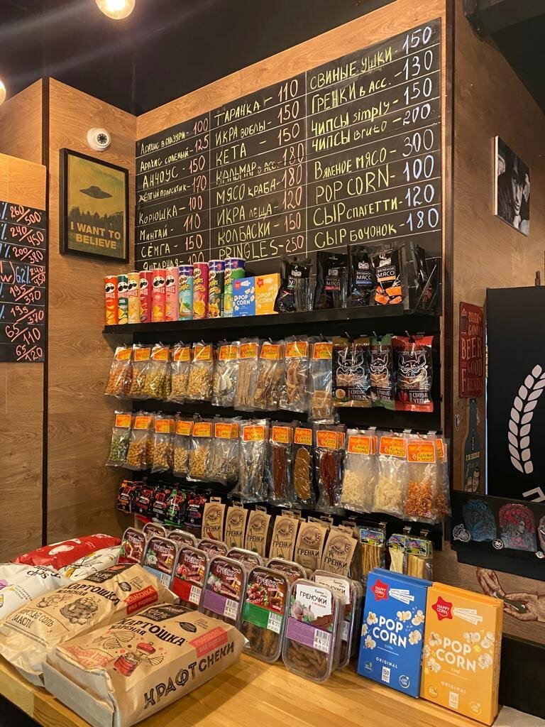 Отличная разливуха, очень уютное заведение, на мой взгляд выбор напитков большой, как и должно быть в таких местах, закусок тоже хватает, от орешков, сыра до различного вяленого мяса, отдельное спасибо персоналу, всегда помогут в выборе и просто поддержат беседу, можно прийти на пару минут, а остаться на пару часов.