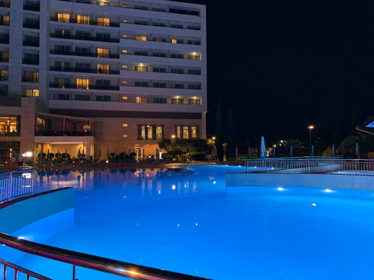 Уже не первый раз отдыхаю в этом отеле . Персонал профессиональный и вежливый , были замечания, они быстро устранили и даже через открытку принесли извинения с тарелочкой фруктов . Как говорят : мелочь , но приятно . Бассейн комфортный для плаваниям, хотя погода не сильно радовала . Ресторан на завтраке , кафе работают идеально . На завтрак был широкий выбор блюд , на их вкусовые качества нет замечаний . Я доволен работой этого отеля.