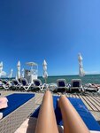 Любимый пляж в Адлере по совокупности критериев. Первое, что привлекает, это чистая прозрачная вода, в отличие, от того же Мандарина. Да, камни, да, это не очень удобно, но именно поэтому вода здесь чистая и не мутная. Запасайтесь специальными тапками) Второе - чистота и удобства - здесь все, выше всяких похвал, ну и ценник соответствующий. Мы обычно бронируем мини бунгало на день (7000₽ в сутки). Очень комфортно. Для семьи из 4-х человек - самое то 👍. На пляже есть бары, можно перекусить, но честно говоря, мне не очень понравилась здесь еда. Но рядом есть Булочная&Бургерная (Новиков), там вкусно) В общем, для меня другие пляжи перестали существовать) Рэдиссон Блю - лучший!