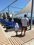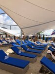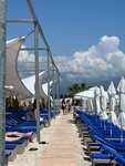 Хороший пляж с белым песочком. Лежаки с матрасами удобные. Есть закрытие от солнца натянутый брезент или зонтики, кому что нравится . Прям до водички есть трап, что очень удобно. Проводить время очень приятно. Публика спокойная, детки не хулиганят, все очень спокойно.