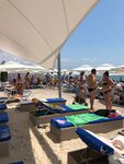 Пляж в идеальном состоянии, лежаки с арендой на целый день. Персонал приветливый. Кабинки для переодивания, душ, питьевая вода. Работают спасатели на расстоянии примерно 30 метров друг от друга.