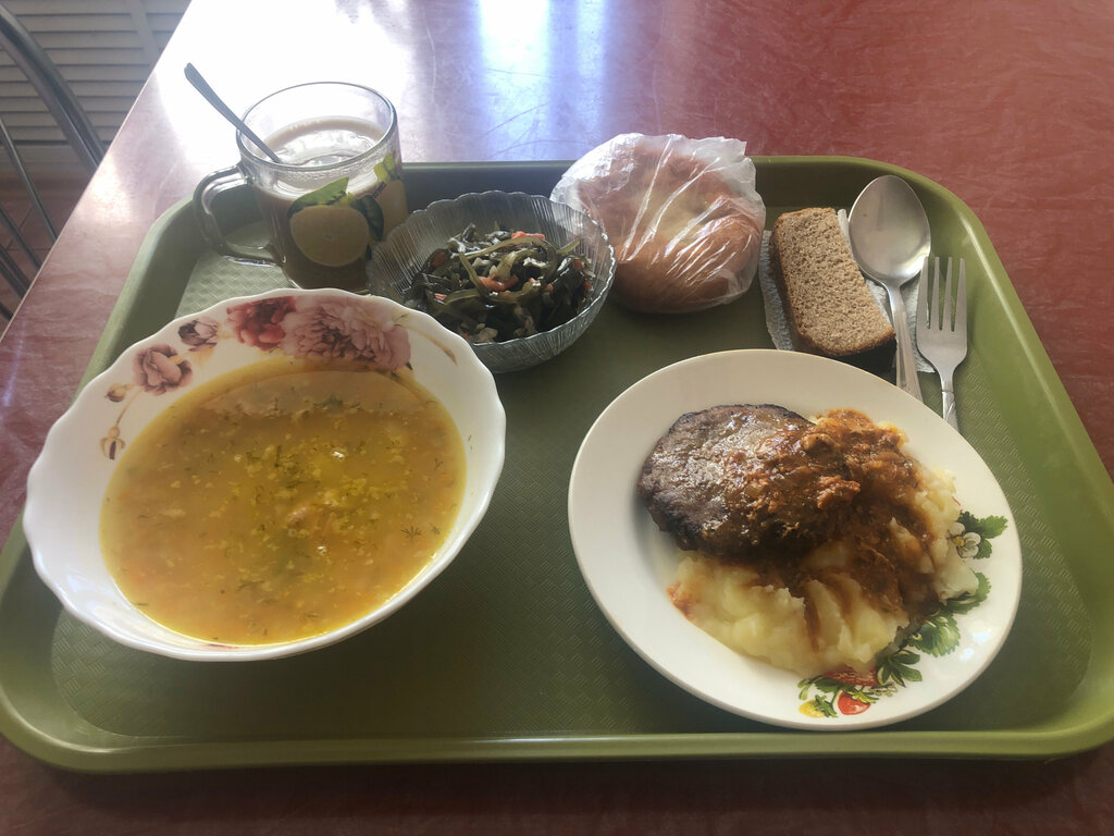 Столовая находится в здании больницы, следовательно ориентирована на определенную целевую аудиторию, и ждать от нее изысков не логично. Меню включает салаты, первое, второе, гарнир, выпечку, напитки. Выбор имеется, так же как и "полпорции" для малоежек. Цены демократичные. Помещение небольшое, но вполне уютное и чистое. Хочу отметить очень вкусную творожную запеканку со сметаной и приветливый персонал. Посетителей много. Столовую к посещению рекомендую.