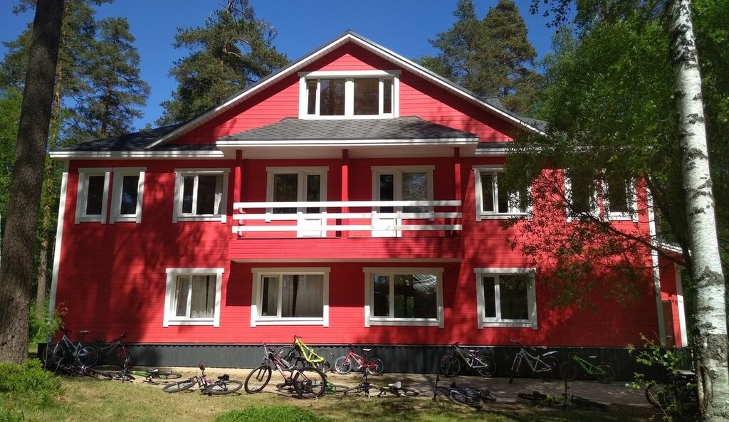 Классное место для семейного отдыха. Можно остановиться в гостевоммдомеинаинесколько номеров или в индивидуальных домах. На территории хорошее кафе с домашней едой, детская площадка, спортивный комплекс на улице и веревочный парк. Большая мануальная зона. Вокруг сосны и черничные заросли.