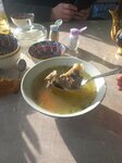 Заехали взяли бозбаш (базартма) и хашлама (фото прилагаю) очень вкусно, готовят не долго, мясо очень мягкое, нежное, но на кости, не всем понравится. Компот холодный самое то в жару. Из плюсов: Цены исходя из порций соответствуют, в городе дороже; также есть хотя бы оконный кондиционер. Из минусов - центральной воды нет, рукомойники в виде бака как на даче; - долго ждать кассира из-за этого быстро зайти поесть не получится