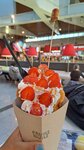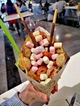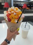 соглашусь с теми, кто писал ниже. Заказали вафли, на троих, хотели сникерс с бананом или клубнику со сливки, но оказалось, что банан закончился, как и клубника. Предложили на выбор персик или ананас, ну один выбрал ананас, двое персик. Прошло более 35 минут и нам пришлось уже подходить, чтобы спросить где наш заказ. После того как подошли сказали, что хватило персик только на одну вафлю, вторая будет с ананасом. Согласились. Прошло ещё минут 10 и нам отдают вафли с ананасом. ВСЕ ТРИ! Хотя нас ни о чем таком не предупреждали. Девушка разговаривая по телефону говорит «извините, я забыла, что персика нет». При этом был ещё инцидент: перед нами стояла девушка с ребенком и ребенок попросил маршмеллоу, девушка ответила, что оно закончилось. Когда я заказывала, я указала специально, что мне без маршмеллоу, но угадайте что произошло? правильно, именно его мне и положили. Сливки в первой вафле растеклись и запачкали буквально всё. Но в конечном итоге девушка дала нам коробку, чтобы упаковать с собой можно было и извинилась, за что и звезда собственно. Но извинения не повлияли на потраченное время, деньги и настроение к сожалению.