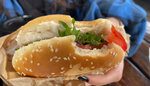 булочка с кунжутом, сыр чеддер, вырезка свиная, помидор, маринованный огурец, соус медово-горчичный, лук, листья салат. Доставка службой такси: Заказ принимается до 20:30