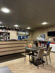 Кафе с хорошим рейтингом. Расположено в сторону СПб и поворота налево со стоянки нет. Внутри все чистенько, зал украшен к Новому году. Места много, просторно. А оценка все же 3 и вот за что: - средний чек точно не 200-300 р., как указано в Яндексе, раза в ДВА выше; - персонал галдит на весь зал. Дверь на кухню открыта, все новости, хочешь не хочешь, узнаешь; - овсянка со странным кисловатым вкусом. На вопрос «почему», ответа так и не дождался. Кроме овсянки, яичницы и кофе ничего не пробовал. Возможно остальные блюда вкусные. Кофе из рожковой машины хороший!