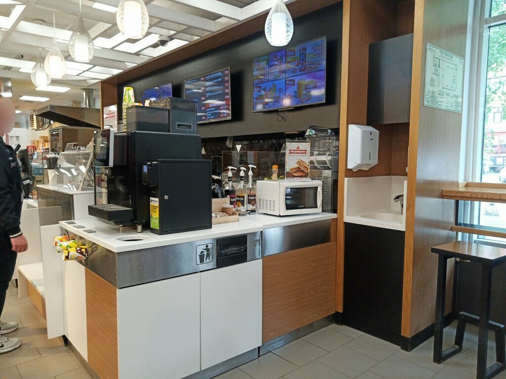 Я захотел покушать и вот я зашёл именно сюда. Я купил бутерброд с тремя вкусненькими сосисками и молочный коктейль. Я наелся и напился . Мне понравилось и я доволен !👍😜👍