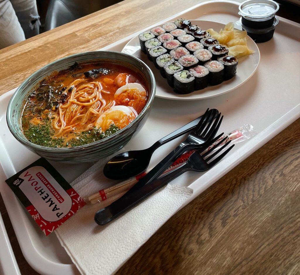 РаменРолл — отличное место для любителей японской кухни и фастфуда. Главные плюсы: - Вкус: Рамен здесь всегда свежий и насыщенный. Бульон богатый, ароматный, хорошо сбалансирован между солёным и умами. - Качество ингредиентов: Используют свежие продукты, что заметно по вкусу и внешнему виду блюд. - Ассортимент: Помимо классического рамена, есть разные вариации роллов, что позволяет разнообразить заказ. - Обслуживание: Быстрое и дружелюбное, персонал внимательный. - Цена/качество: Стоимость адекватна качеству, порции сытные. В целом, РаменРолл — отличное место для быстрой и вкусной еды, которое стоит посетить, если хотите попробовать настоящий рамен и японские роллы с хорошим соотношением цены и качества.