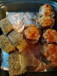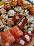 Были в субботу в 14 часов, очереди нет, но заказ ждали минут 25, за это время могли уже поесть в других корнерах. К блюдам вопросов нет: большие роллы, вполне себе вкусные. Слегка горчит панировка - масло для обжарки, фритюра, нужно менять чаще. Но в целом, это большие внушительные наборы роллов. Очень сытно и вполне съедобно.