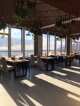 Новое, уютное и очень красивое заведение . Панорамный вид на медведь гору , очень интересное меню, несколько видов блюд из моих любимых рапанов, очень вкусный салат с морепродуктов, круассан с лососем. Цены достаточно лояльные , приятный персонал . В общем остались довольны))