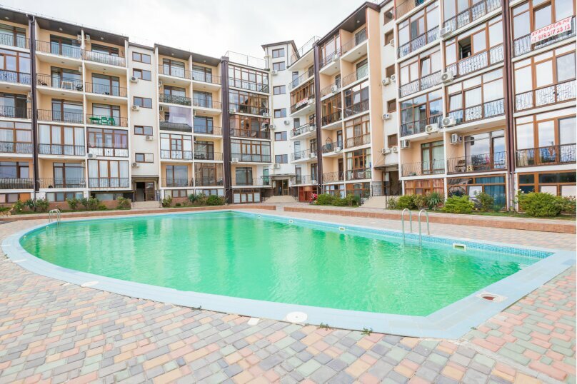 Бронировали мы это место как обычную квартиру Может быть здесь есть и классическая гостиница, но скорее нет. Место закрыто для посторонних, спокойно, но в выходные играет музыка во дворе. Есть бассейн, он чистый. Есть магазинчик в этом же здании, есть кафешка. За нее и минус: тесная, грязноватая, второй раз идти не хочется, хотя женщина там работает вполне радушная. В расположении есть плюс и минус. Плюс в том, что это частный сектор, нет шумных дорог, в пяти минутах ходьбы три просторных пляжа (не оборудованных) с чистой водой и пологим спуском, без волн. Минус в том, что рядом три военных части, которые рандомно включают сирену по своим каким-то нуждам, в том числе и среди ночи— такое себе. Учения еще могут проводить — стрельба, взрывы, все дела. Ну и вишенка: за две недели два раза отключали свет, тоже не айс.
