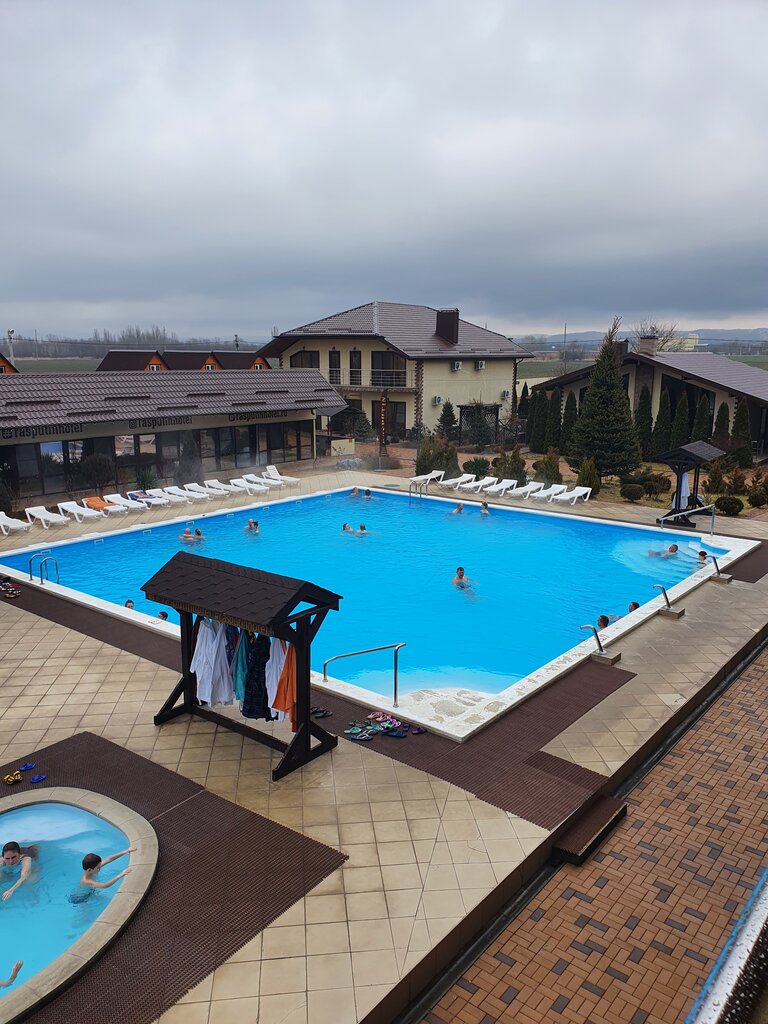 Незабываемые впечатления остались о времени проведенном на термальном источнике базы отдыха "Распутин". Отдыхали в комплексе "Екатерина", две спальни, большая гостиная с двумя раскладным диванами, большим столом на двенадцать посадочных мест, кухней. Шикарный дизайн, чистота, свежайшие постельное белье, халаты, полотенца. В наличии есть всё от кухонных принадлежностей, зубных щеток, фена, утюга и всего самого необходимого для комфортного проживания и отдыха. Отличный чистый бассейн, посетителей почасовых нет, только проживающие на базе отдыха. Завтрак входил в стоимость проживания, шведский стол, все очень вкусно. Персонал вежливый. "Распутин" - так держать. Однозначно приеду отдыхать ещё!!!