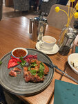 Хорошее обслуживание, в меру любезное, без навязчивости, звать или ждать официанта не нужно, персонал включён в работу. Приятный зал, работают кондиционеры, продуманное освещение, чисто в сан. узле. Заполненность высокая, уже к 13-00 в воскресенье треть зала была заполнена. Еда...Ну вроде и плохого ничего сказать нельзя, но и восторгов нет. Ну, наверное, отметить семьёй день рождения или просто посидеть в выходные - хорошо, погурманствовать и удивить свои вкусовые сосочки- ну лучше в другое место. Сугубо личное мнение. Всем процветания!