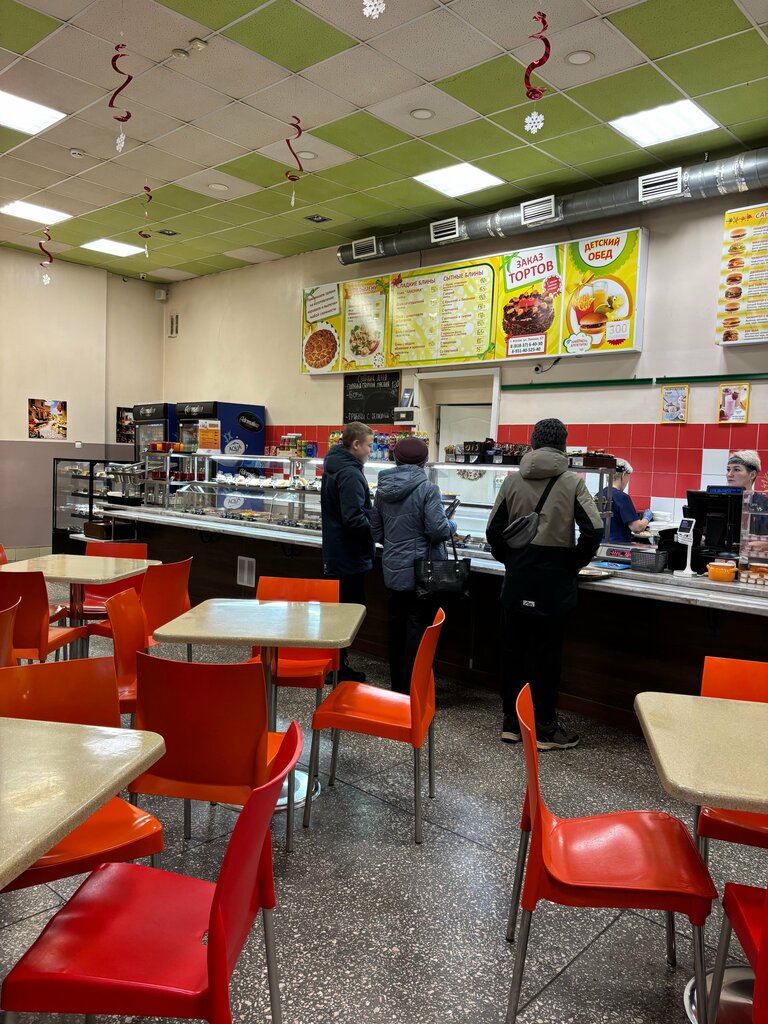 Приемлемая столовая/бистро, удачно расположена рядышком с ж/д вокзалом и магазинами — удобно пообедать перед отъездом! Без изысков, типично столовские блюда (гречка, макароны, котлеты, поджарка, печень, салаты развесные). Всё средней вкусности:) Недорого!!! Супы брать не рекомендуем, особенно солянку; сельдь под шубой была с костями😵‍💫 Также в ассортименте пицца, пончики, хот-доги — короче, всякая вредная еда (заранее приготовленная). Во всех блюдах ОЧЕНЬ много тушеного лука) аккуратно, если его не любите. Есть более-менее нормальный туалет(только для посетителей), в углу — детский автоматик с играми! На четверку с минусом столовая тянет!