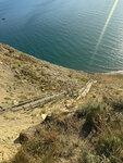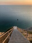 Лестница находится в плачевном состоянии, деревянные ступени местами сломаны и вызывают опасения, нижняя часть видно что недавно сделана, на закате очень красиво, внизу каменный пляж, камни при входе в море скользкие. Вообще для фотосессии на закате отличная локация, чем то напоминает Средиземноморье)