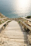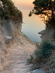 400 ступеней и вы на чистом каменном и безлюдном пляже, с великолепным видом, в особенности во время заката, незабываемые ощущения