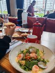 Сегодня решили посетить данное заведение. Дизайн и интерьер ресторана довольно красивый со вкусом 👍. - Что касаемо еды, заказали: Том-ям, фирменную котлету с пюре, салат с креветками, пасту с морепродуктами, чай и десерт. Самыми вкусными оказались пюре, салат и том ям, вкусы играют и балансируют друг друга, особенно салат, 5 звёзд ⭐. Что касаемо котлеты то 4-ка твёрдая, периодически попадались прожилки и тяжело пережёвывать было. Но паста с морепродуктами увы 2-ка, были очень расстроены. В наличии не было пиццы вообще, или не было повара. Администратору необходимо поработать над официантом, не приветливый от слова совсем.