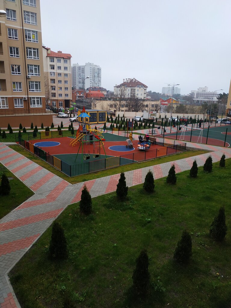 Чисто, спокойно, парковка в нутри двора (всегда есть свободные места), детская и спортивная площадки в отличном состоянии! До моря 10-15 минут, быстрее не получится, а до пляжа "Приветливый" 20-25 минут.