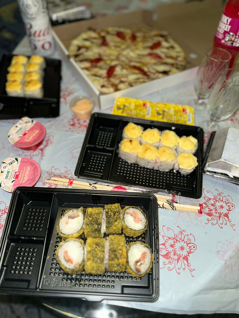 Если хотите испортить себе настроение, то вам сюда. Заказали доставку, обещали доставить в течении часа. Прошло 1,30, ну ладно привезли, часть)) 2 ую часть заказа везли еще 40 мин. Не положили к роллам соевый сойс и имбирь, который пришлось ждать еще 30 мин. В общем времени прождали 3 часа. Не рекомендую!