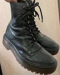 Отдавала 2 пары. У одной поменяли набойки, вторую восстанавливали (покраска, заделали маленькую дырку на коже, заменили шнурки). Фото до, к сожалению, нет, прикладываю после. Ботинки были в носке 6-7 лет, кожа в носовой части ободралась, присутствовала маленькая дырка.