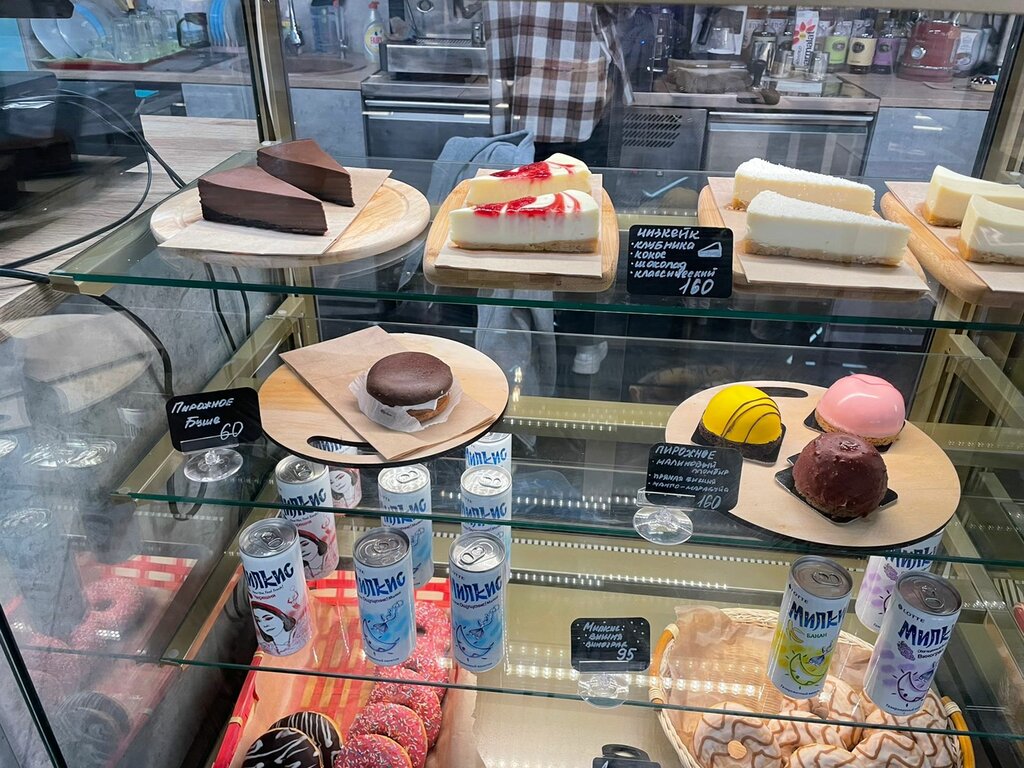 Замечательная кофейня! Девочки варят очень вкусный кофе. Стильный интерьер. Тортики супер.! Мороженное, лимонады. Приятно посидели, вкусно поели.