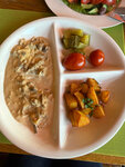 Хороший персонал, неплохой интерьер, вкусные блюда не по меню. Основное меню специфическое! По блюдам: Котлеты из оленины не вкусные, не сочные, приготовить из этого мяса можно гораздо вкуснее. Пельмени на троечку. Бефстроганов подаётся с магазинным жареным картофелем (очень маленькая порция), в ухе плавает цветная капуста. Не по меню - вкусный винегрет, но иногда толи без соленных огурцов, толи без соли, вкусные суп харчо и борщ, но они редко бывают. Сало на троечку, гренок к салу нет, капуста квашеная не вкусная. Очень странная паста в удон с курицей, курица сухая. Цветная капуста барбекю вкусная. Котлета из детского меню отвратительная (как можно так испортить куриную котлету?!) Греческий салат с пластиковыми помидорами (узбекских не нашли. Ну и ценник для такого качества конечно космос. :/ С учетом того, что это единственный ресторан на территории, хотелось бы побольше классических блюд в основном меню: паштет куриный с гренкой, борщ, грибной, том ям, рыбные котлеты, куриные котлеты, жареная картошечка с грибочками и лучком, салат греческий вкусный, салат цезарь, сало с чесноком и гренками, пирожки можно было бы.