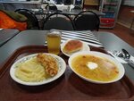 Еда вкусная, домашняя. Порции внушительные. Атмосфера уютная. Отношение хорошее. Обслуживание прекрасное. Выпечка очень вкусная. Помещение уютное