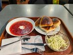 Столовая просторная. У столов рядом со стенами есть розетки. Комплексный обед стоит 450р. Порции средние, но вполне достаточные чтобы наесться. Выбор блюд маленький, еда вкусная. В комплексный обед входит выпечка. Круто! Не встречал раньше такого. Есть выбор из нескольких вариантов. Я выбрал булочку с капустой и она была очень вкусная. По соотношению цена/качество ставлю пятёрку. Если бы работал поблизости обязательно заходил бы сюду регулярно.