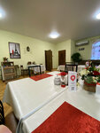 Выбрали этот гостевой дом чтобы переночевать и отдохнуть после долгой дороги из Екатеринбурга. Для трех взрослых и ребенка 3 года нам предоставили оставшийся свободный четырехместный номер - в нем была отдельная комната с двуспальной кроватью, просторный санузел с душевой кабиной и большая комната с двумя огромными диванами, столом и стульями, телевизором. Во дворе есть место чтобы оставить машину. Стоимость за проживание 3200 рублей в сентябре 2024, дополнительно оплатили питание (можно было выбрать из меню на свой вкус) ужин и завтрак на след день, общая сумма получилась 4840 рублей. Кормят кстати вкусно, домашняя еда, хорошие порции. Остались очень довольны, отличный вариант чтобы отдохнуть и остаться на ночлег. Женщина хозяйка очень приятная и добрая, сначала показала номер, накормила, угостила ребенка арбузом. Чувствовали себя как дома, тепло и уютно, в номере вкусно пахло. Наша комната была оформлена в японской тематике, веер, картины на стене. Также на столе в доступе были 4 кружки, чайные ложки, сахар, ассорти чая, чайник. В ванной комнате есть фен и полотенце для рук, жидкое мыло, шампунь и гель для душа в пакетиках. Предоставляются и полотенца для душа, постельное, все чистое и опрятное. На первом этаже есть бильярд и детский уголок. Хорошо выспались и на следующий день, позавтракав, снова отправились в путь. Так что могу смело рекомендовать это место если ищите где комфортно переночевать 🩷