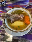 Суп оказался пересоленым. Подошёл спросить это так и должно быть. Сказал что много соли, есть невозможно. Мне сказали что я должен был один раз на вкус попробовать и если не нравится сдать обратно. Хотя я честно пытался это есть, думал может так надо. Но понял что есть невозможно. Просто оставил этот суп там. Пускай сами едят. Одну звезду добавил за лепёшки. Лепёшки вкусные