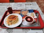 Не понятно почему на вывеске написано кафе? Это обычная столовая. Просторное помещение, но посадочных мест немного. Выбор блюд небольшой, готовят на троечку, но есть можно. Цены невысокие. Персонал вежливый.