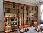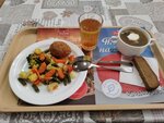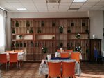 Интересное кафе. Плюсы: Большое разнообразие блюд и кухонь. Готовят неплохо. Работа на вынос. Много посадочных мест. Интерьер. Минусы: Порционного есть, но мало в основном блюда на вес (вторые). Нет дисконтной программы (по крайней мере ни чего не было сказано). Цены выше среднего. Напитки кроме чая и кофе зимой все холодные (компоты, морсы, соки, отвары их спецом ставят в охладитель - летом это надо делать...), а охлаждаться не хочется зимой :). Много столиков с табличкой 'Занято' :), но они ни разу не использовались в обед. Завтраки написано есть, но кафе работает только с обеда с 11:00. Так, что есть куда стремиться.