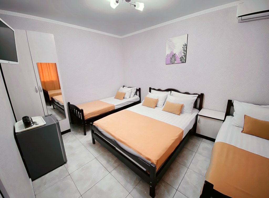 Обалденный отель.Мы уже второй раз туда едем,ни капли не пожалели.Номер бронировали первый раз 2-х спалка,1-спалка и диван.Второй раз 2-х спалка и диван -все прекрасно!!!В каждом номере душ,туалет, телевизор,кондей и маленький холодильник.Все чисто,уютно,прекрасная хозяйка.Без проблем договорились о брони,прислали заранее фото номера.В общем приезжайте туда отдыхать -не пожалеете.